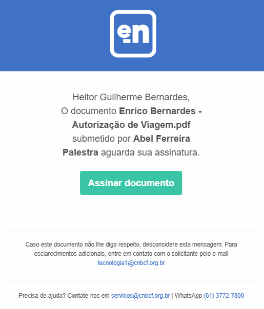 Os responsáveis do menor receberão um e-mail para assinarem digitalmente a AEV com um certificado digital notarizado ou ICP-Brasil. Poderão também acessar o sistema com o certificado digital deles e verificarem os documentos pendentes para assinatura.