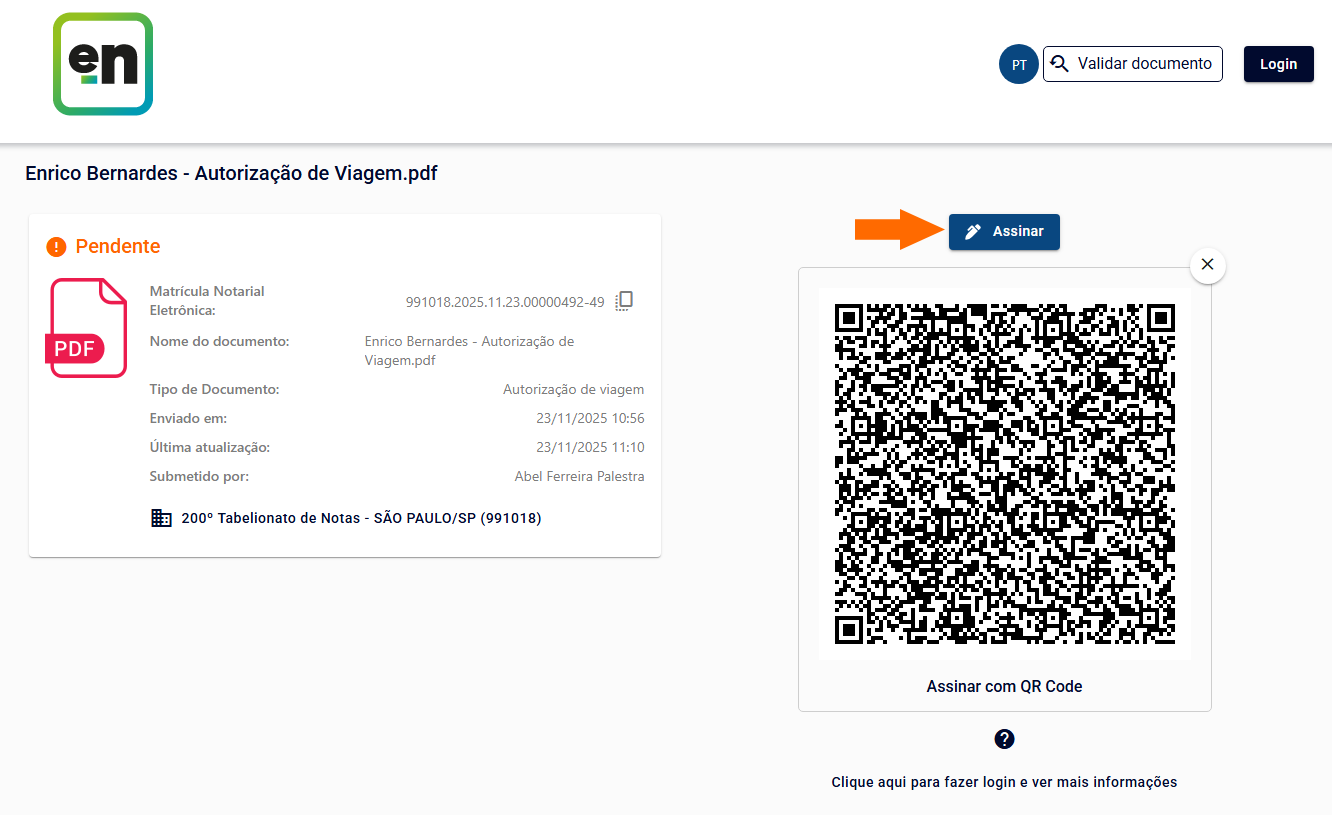 Se os responsáveis do menor tiverem o certificado digital notarizado, poderão também assinar pelo app e-Notariado, na opção 'Documentos'.