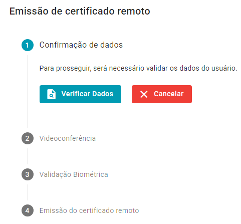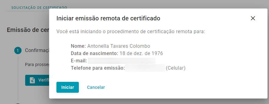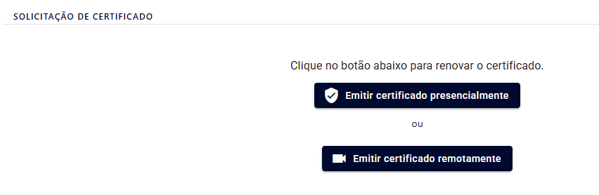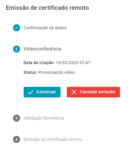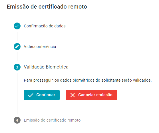 Se a opção for por emissão remota do certificado, clique em Emitir certificado remotamente.