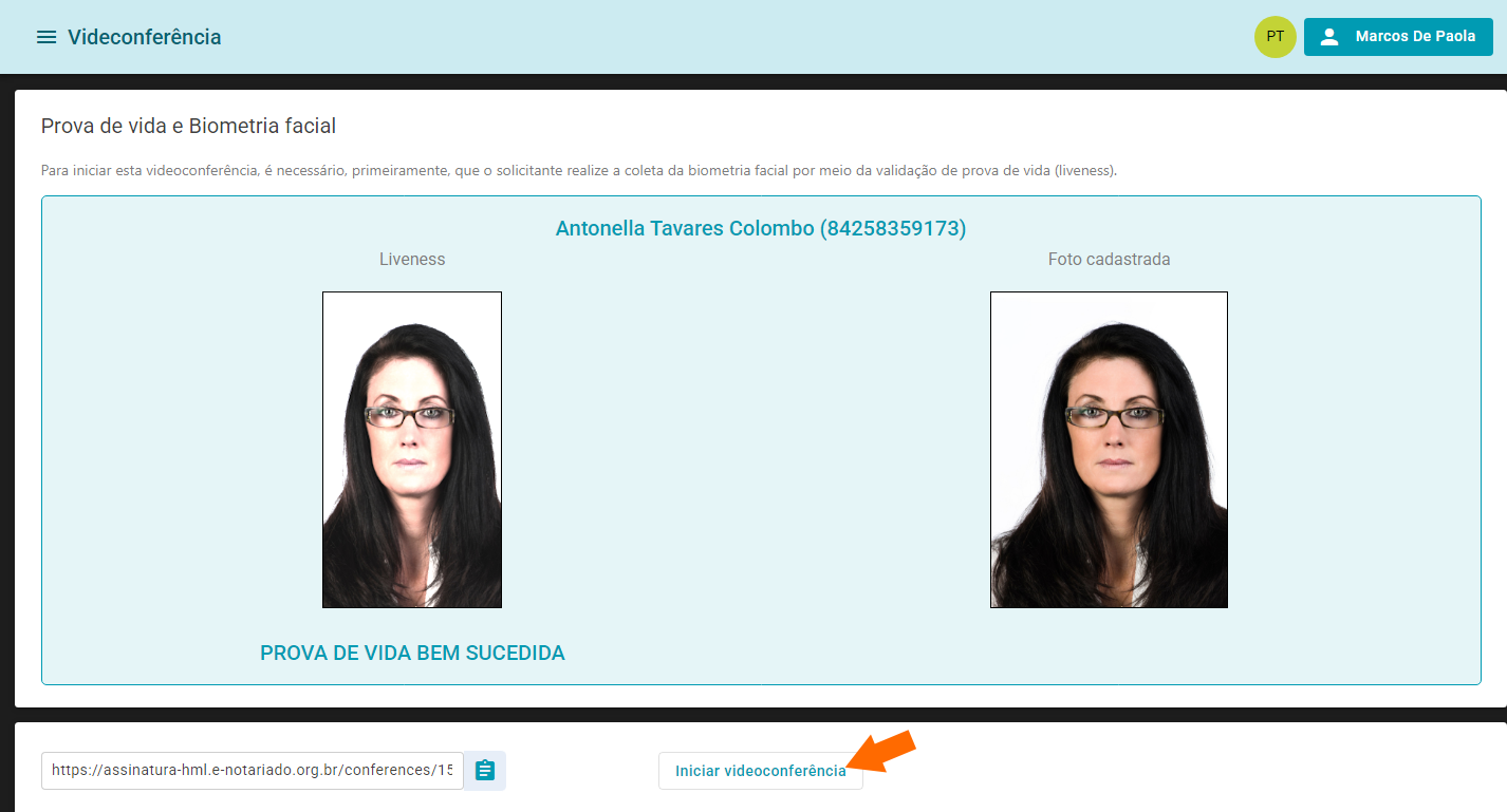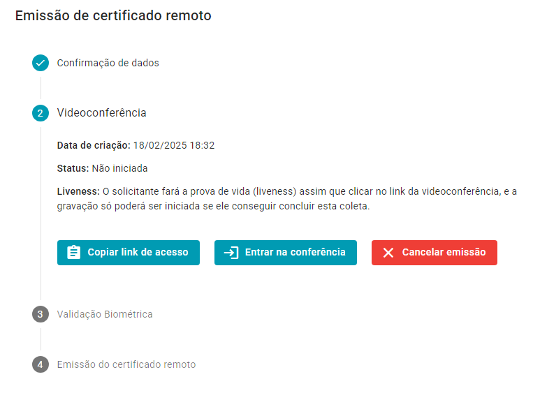 A próxima etapa será disparar a prova de vida e realizar a sessão de videoconferência.