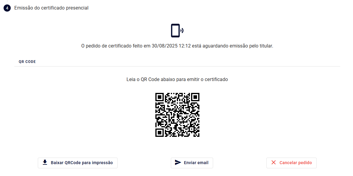 O sistema já apresentará o QR Code para a emissão do certificado.