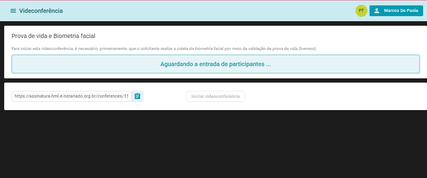 Assim que o solicitante conseguir realizar a prova de vida a contento, será direcionado à sala de espera da videoconferência, aguardando a entrada do usuário do cartório.