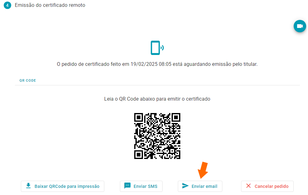O solicitante do certificado digital notarizado deverá ler o QR Code de emissão, ou clicar nos links disparados por e-mail ou sms pelo cartório para iniciar o processo de emissão.