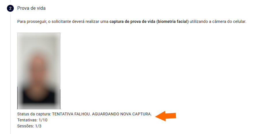 O solicitante terá até 10 tentativas para realizar a captura da prova de vida com sucesso.