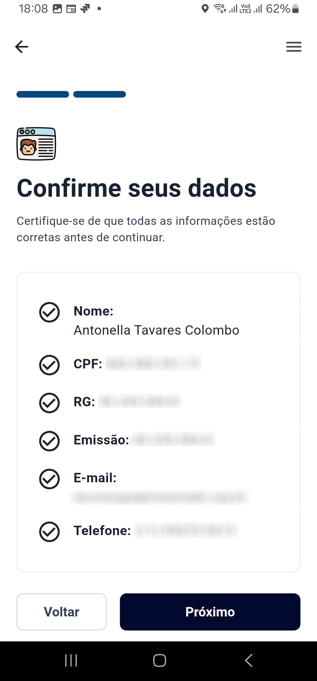 Confirme novamente se os dados apresentados estão corretos e clique em 'Continuar'.