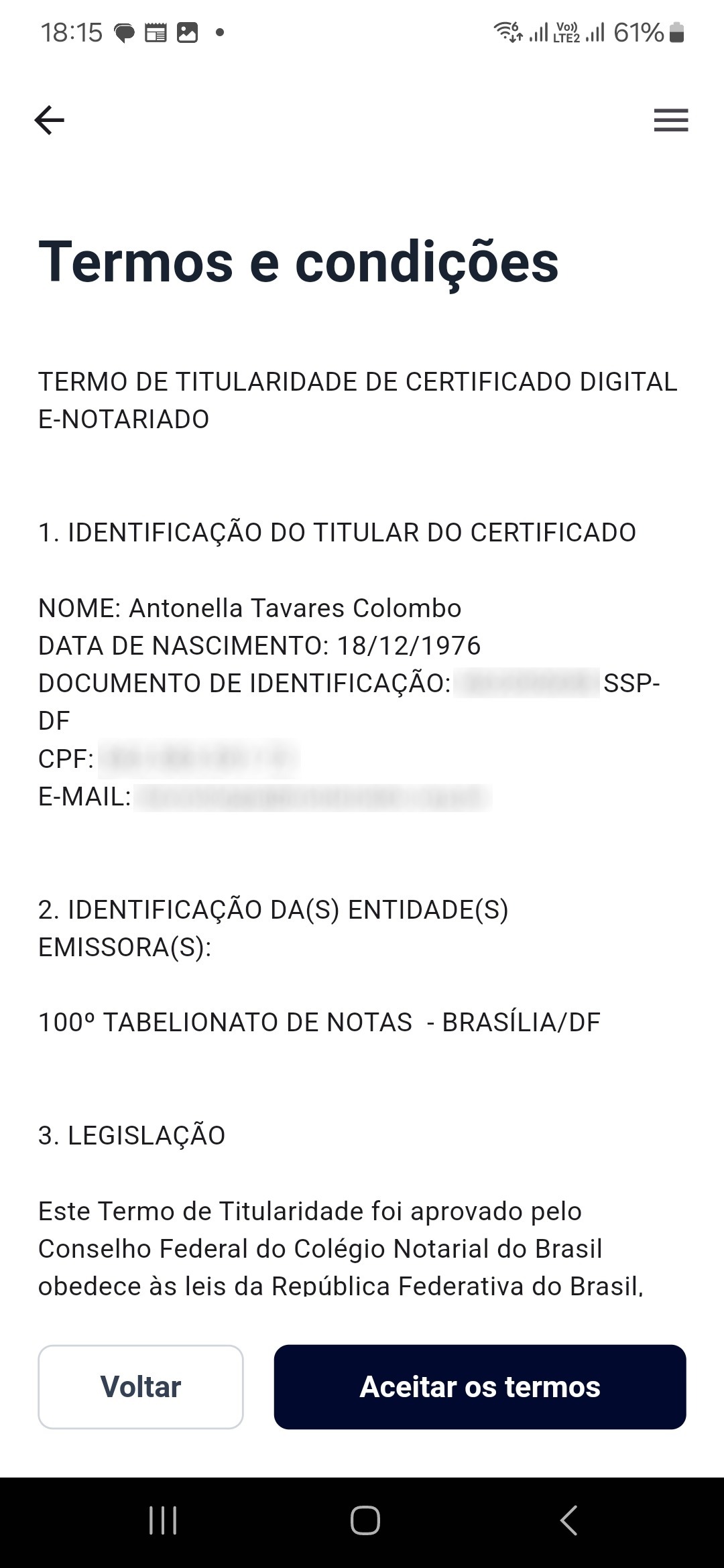 Se a pessoa já tiver um certificado digital emitido em seu cartório, já aparecerá a indicação nesta tela