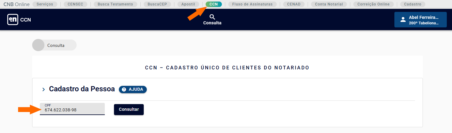 Acesse o módulo CCN e efetue a consulta do CPF.