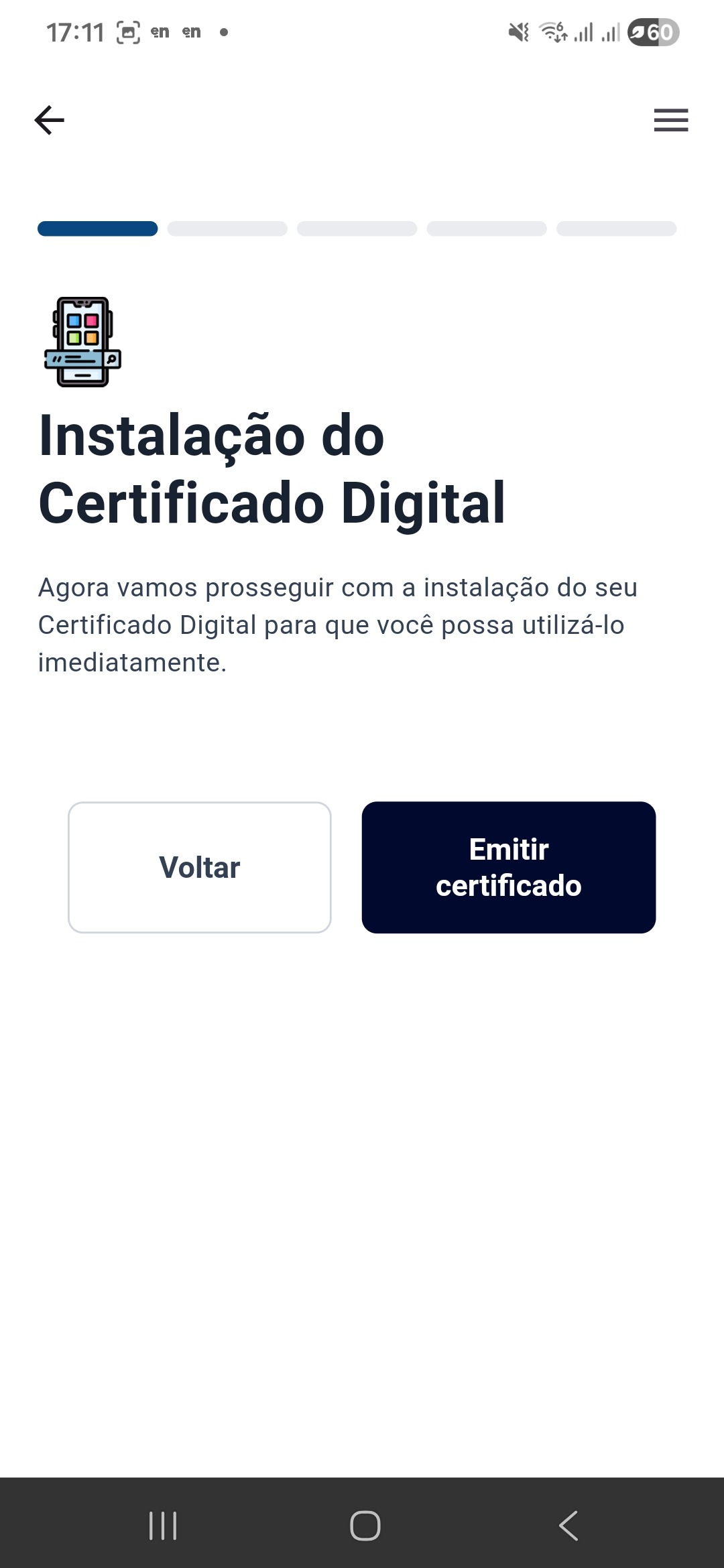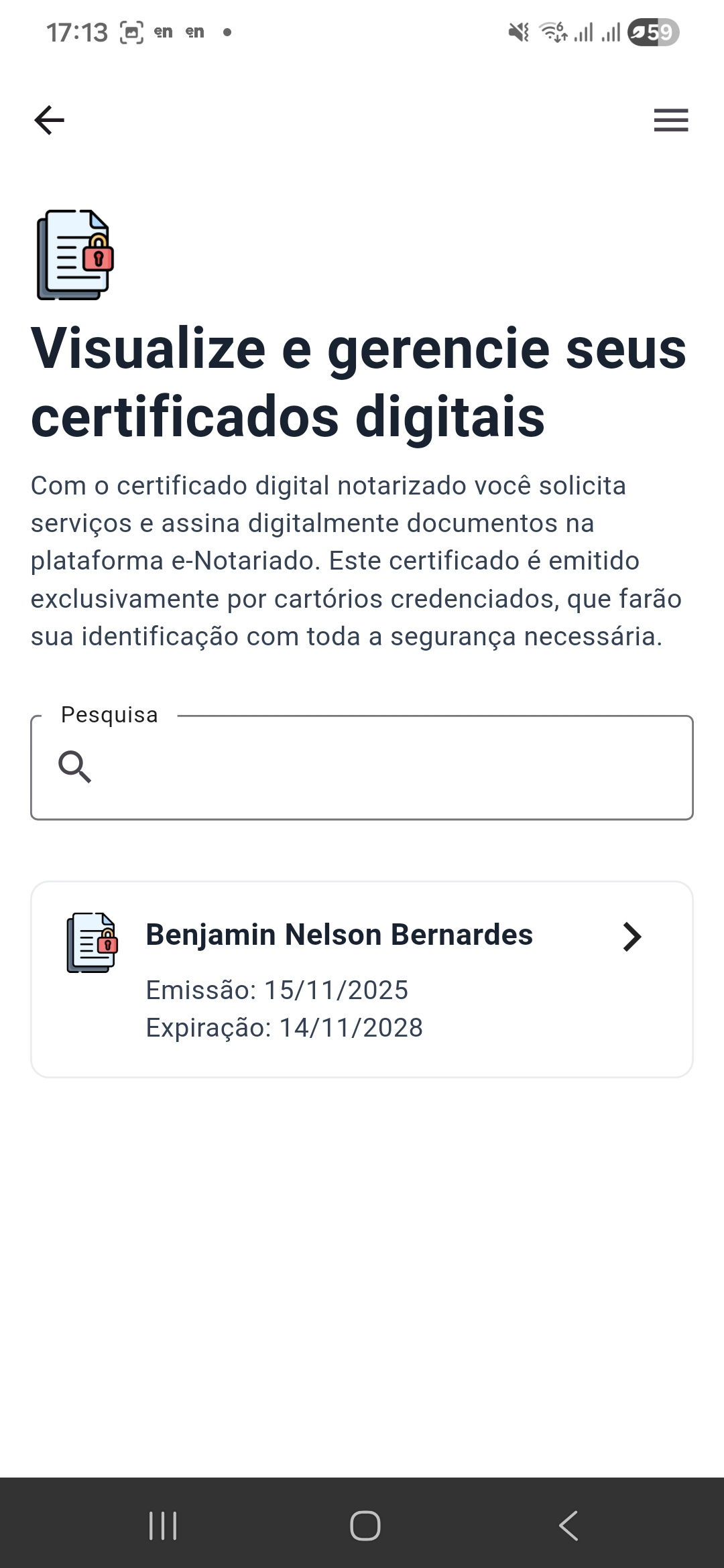 Caso tenha algum certificado digital anterior no celular, exclua-o para facilitar a sua operação depois com o novo certificado emitido.