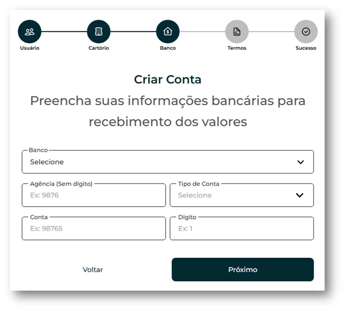 Informe os dados bancários do cartório para o recebimento da remuneração das operações realizadas.