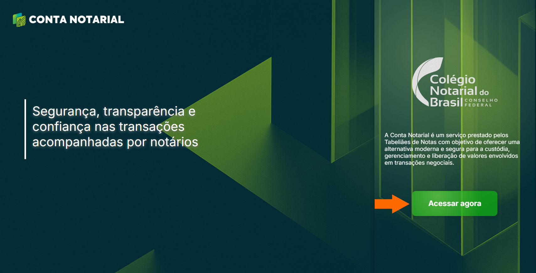 Acesse https://contanotarial.org.br/ e clique em 'Acessar agora'