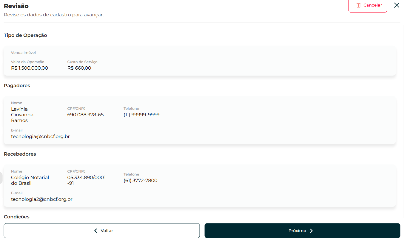 Efetue a revisão de todos os dados informados e clique em "Próximo".